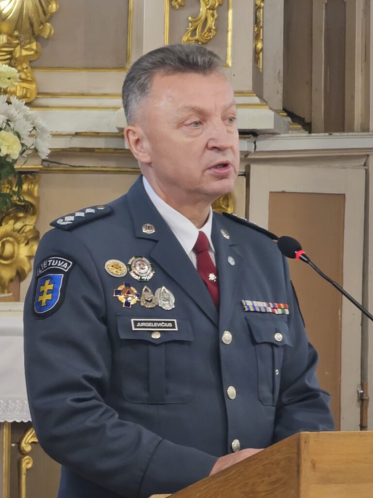 „Ši diena yra mūsų bendrystės ir vienybės diena, ir jūs tą įrodote kasdieniu darbu. Vedini vertybių, einate sąžiningai atlikti savo pareigą. O mūsų pareiga, visų pirma – saugoti žmogų, ginti jo teises. Taip pat užtikrinti, kad mūsų visuomenė jaustųsi saugi ir rami kiekvieną dieną“, – sakė A. Jurgelevičius.
