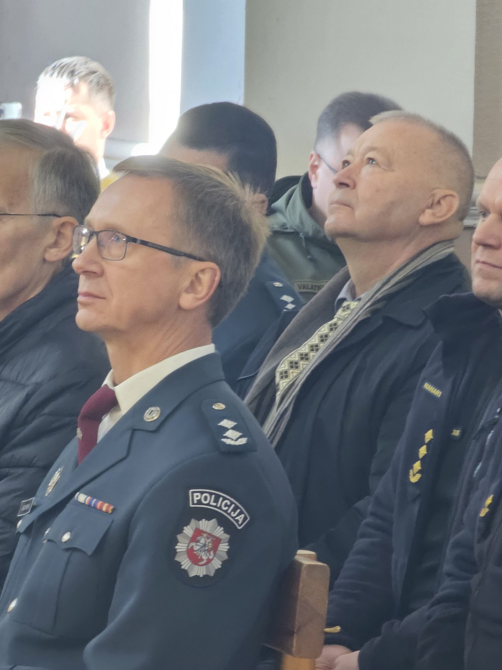 „Kiekvienas pareigūnas tiek komisariate, tiek šalyje, buvo pasiryžęs ateiti jums į pagalbą. Informacija dalinosi kolegos iš Latvijos, Lenkijos, kad tik jūs kuo greičiau atliktumėte nelengvą darbą. Turbūt savo šeimos nariams iš karto nė nepasakojate to, kas vyko. Kuomet viskas baigiasi gerai, aš tikiu, kad ne veltui turime tradiciją susirinkti bažnyčioje, pasimelsti, kad mus visus saugotų angelai“, – kalbėjo policijos viršininkas.