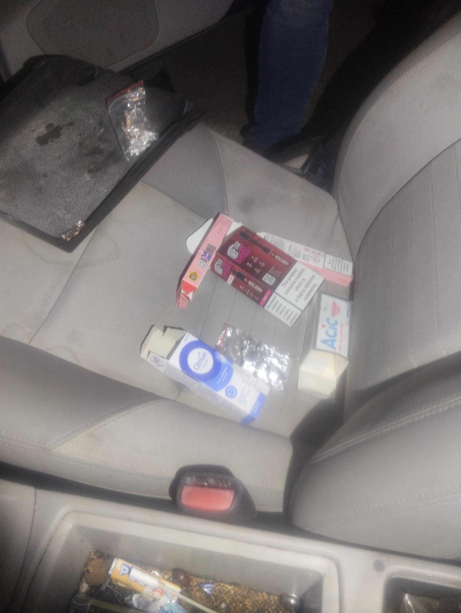Atlikus detalesnę transporto priemonės apžiūrą, joje taip pat aptikti folijos paketėliai su baltos spalvos milteliais, įtariama – narkotinėmis ar psichotropinėmis medžiagomis.