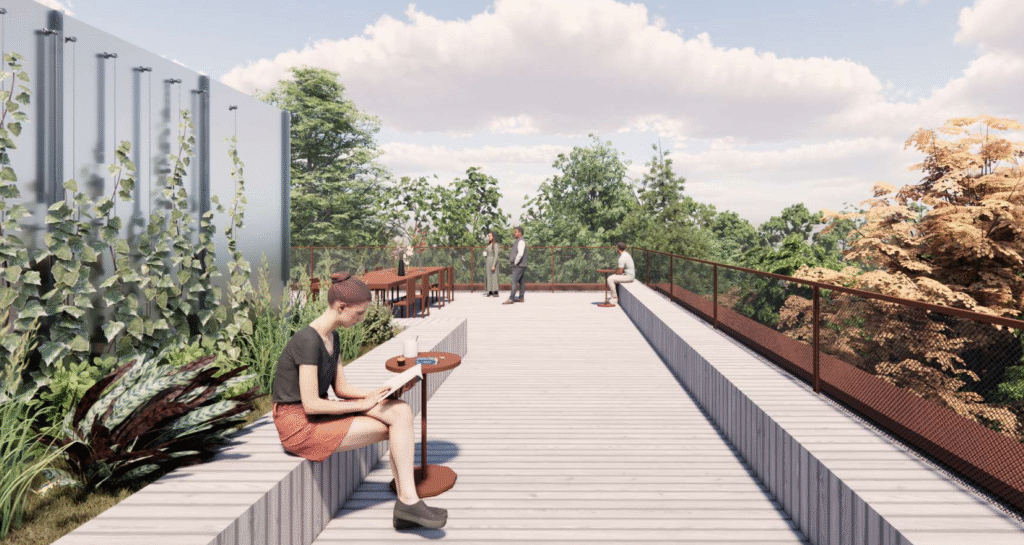 HAB’e bus įrengti darbo, pokalbių, susitikimų kambariai, biurai, bendradarbystės erdvė, konferencijų salės, kavinė, taip pat – skaitmeninių industrijų, architektūros ir projektavimo laboratorijos, poilsio zonos, lauko terasa ir kitos patalpos. Pastate veiks liftas.