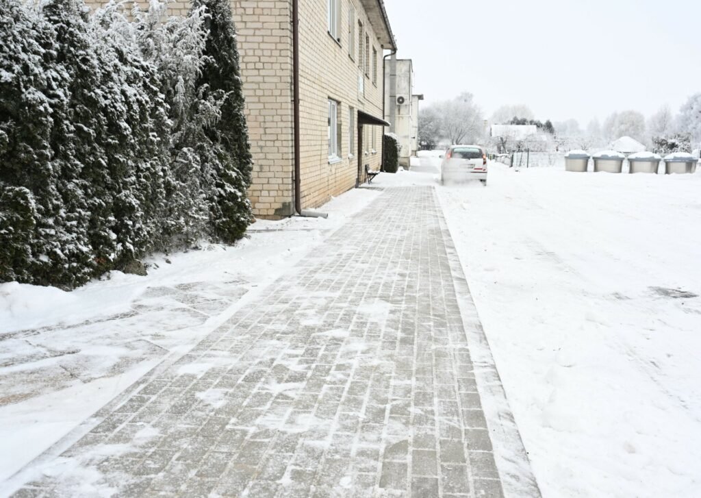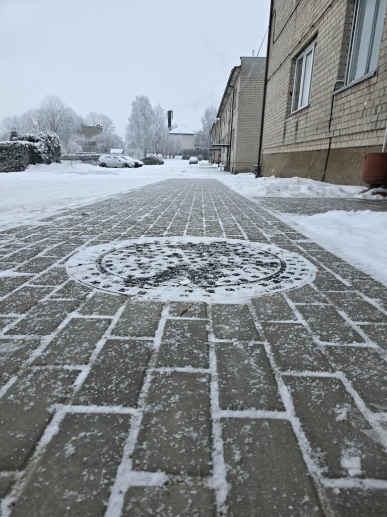 Parko gatvės gyventojų patogumui prie įėjimų į laiptines taip pat įrengtas trinkelių šaligatvis.