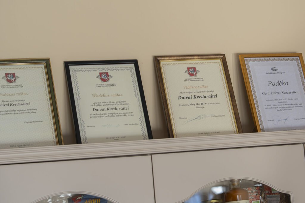 Ūkio šeimininkė Daiva Kvedaraitė pagal išsilavinimą yra maisto technologijos inžinierė. Anksčiau ji dirbo konsultante ir padėdavo ūkininkams rengti paraiškas europinei paramai gauti. Tad kai prieš du dešimtmečius su vyru Gediminu Radzevičiumi ir broliu Sigitu Kvedaru svarstė pradėti ūkininkauti, šaltalankiai į jų gyvenimą atėjo tarsi natūraliai.