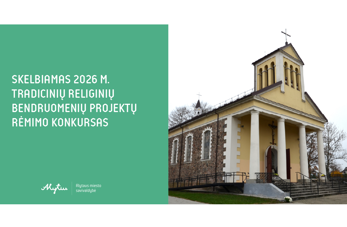 Vadovaujantis į Alytaus miesto savivaldybės tradicinių religinių bendruomenių rėmimo projektų atrankos konkurso tvarkos aprašo, patvirtinto Alytaus miesto savivaldybės tarybos 2022 m. kovo 31 d. sprendimu Nr. T-79, skelbiamas Alytaus miesto savivaldybės tradicinių religinių bendruomenių rėmimo projektų atrankos konkursas.