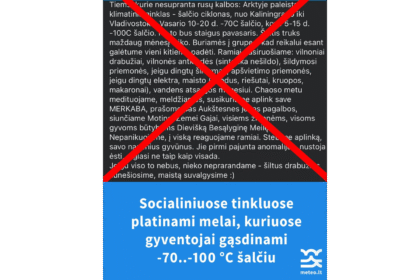 Lietuvos hidrometeorologijos tarnyba įspėja: socialinuose tinkluose platinama melaginga informacija, kurioje gyventojai gąsdinami…