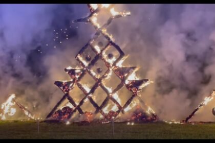 Baltų vienybės diena Alytuje: šiaudinės skulptūros virto įspūdingais liepsnų raštais (VIDEO)